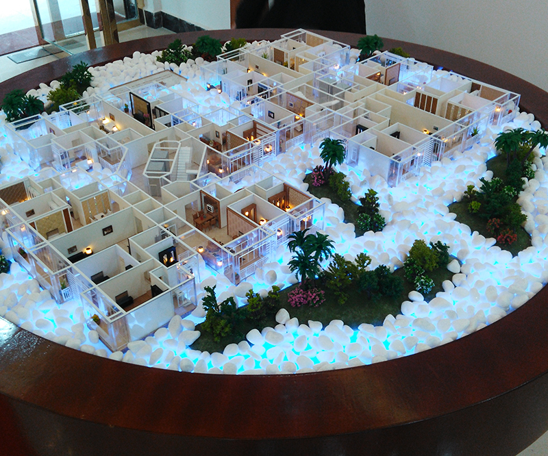 采用透明亞克力制作、內部按比例制作家私布局、達到真實仿真效果。