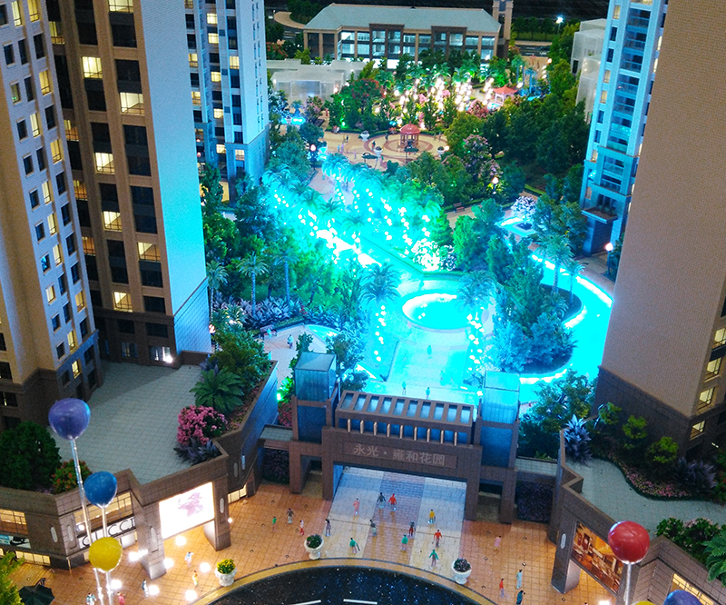 模型采用ABS等材料經過CAD畫圖手工拼接、上色等制作工藝完成、并在模型內部輔助LED燈光達到客戶展示要求