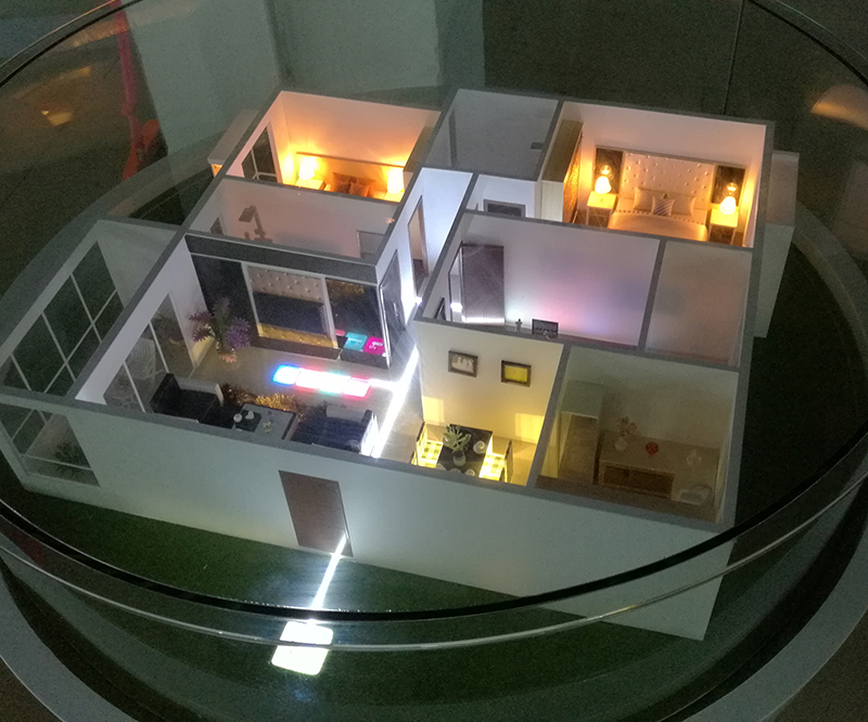 采用透明亞克力制作、內部按比例制作家私布局、達到真實仿真效果。