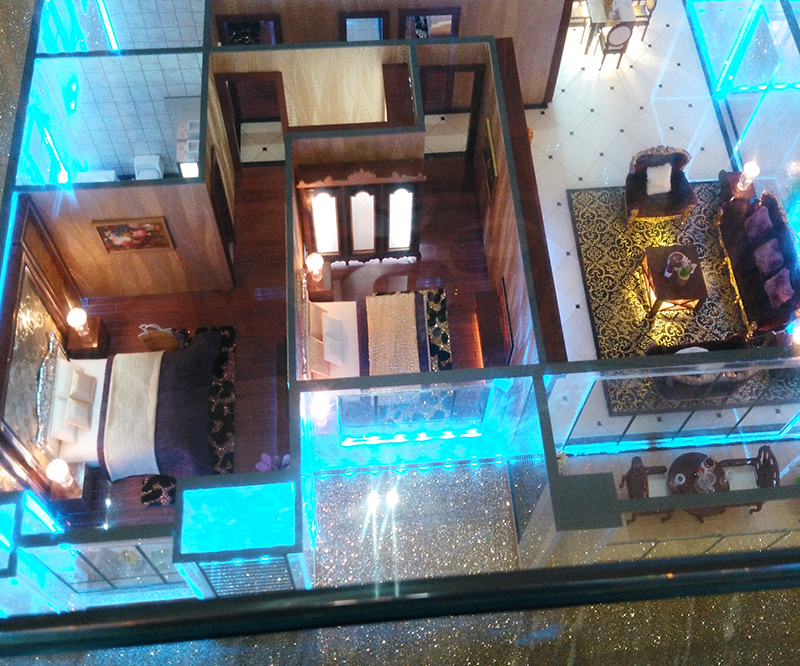 采用透明亞克力制作、內(nèi)部按比例制作家私布局、達(dá)到真實仿真效果。